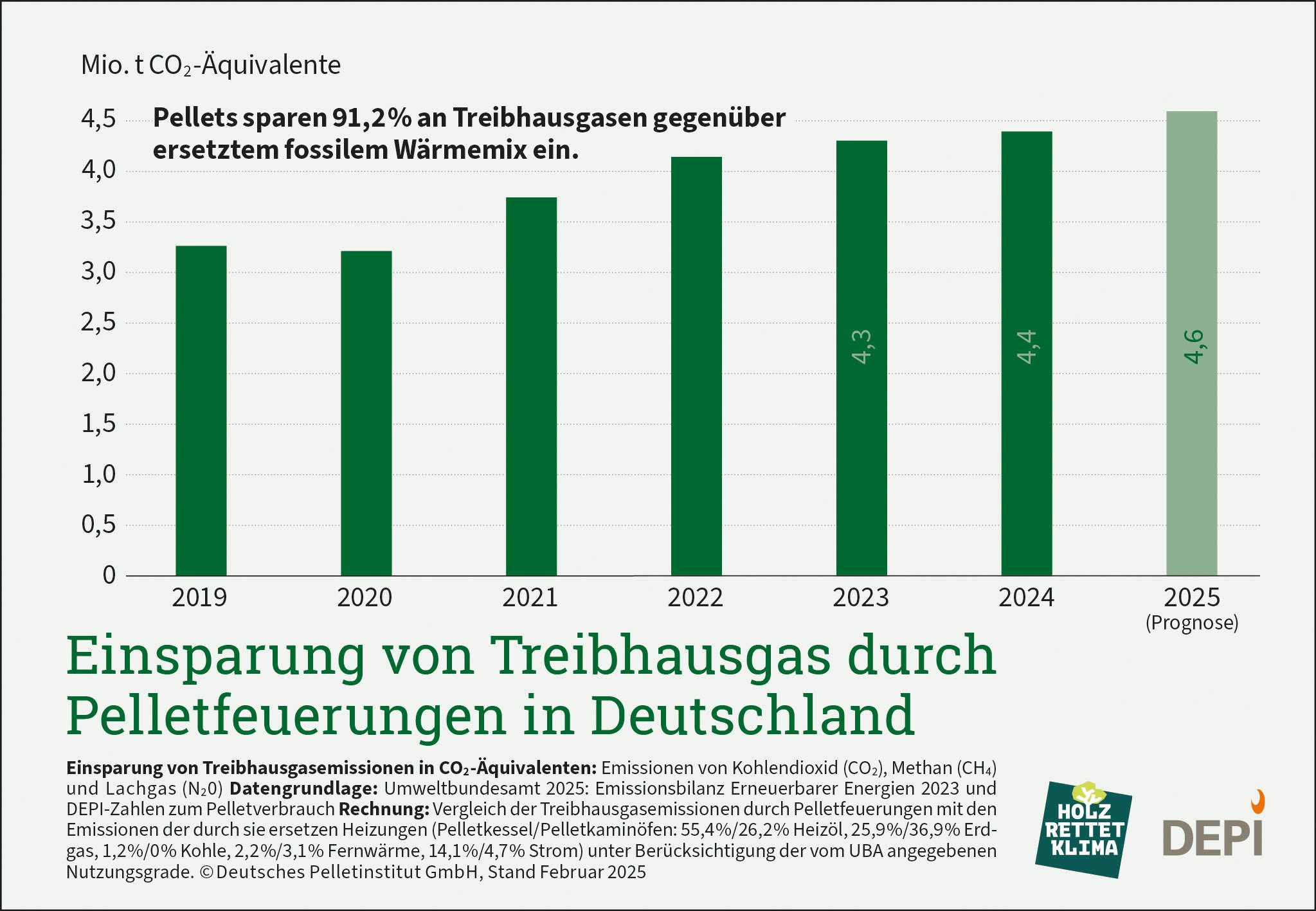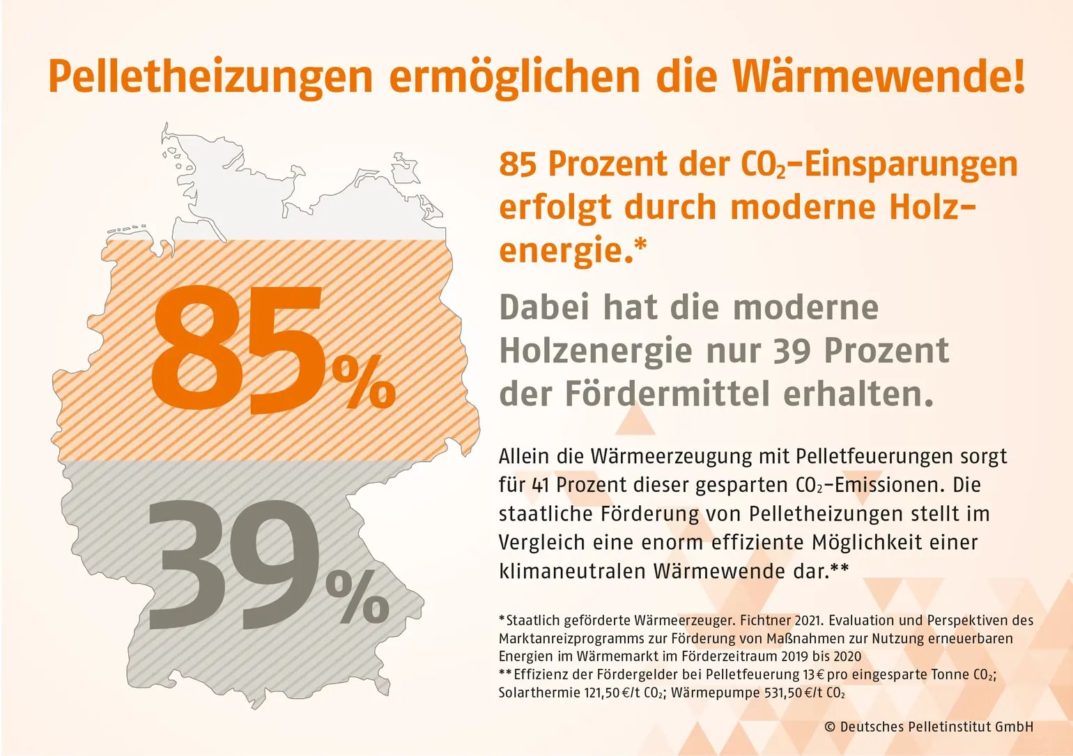 Im Vergleich zum fossilen Brennstoff Heizöl werden mit jeder Pelletheizung, die auf dem neuesten Stand der Technik ist, mehr als 90 Prozent CO2 eingespart.